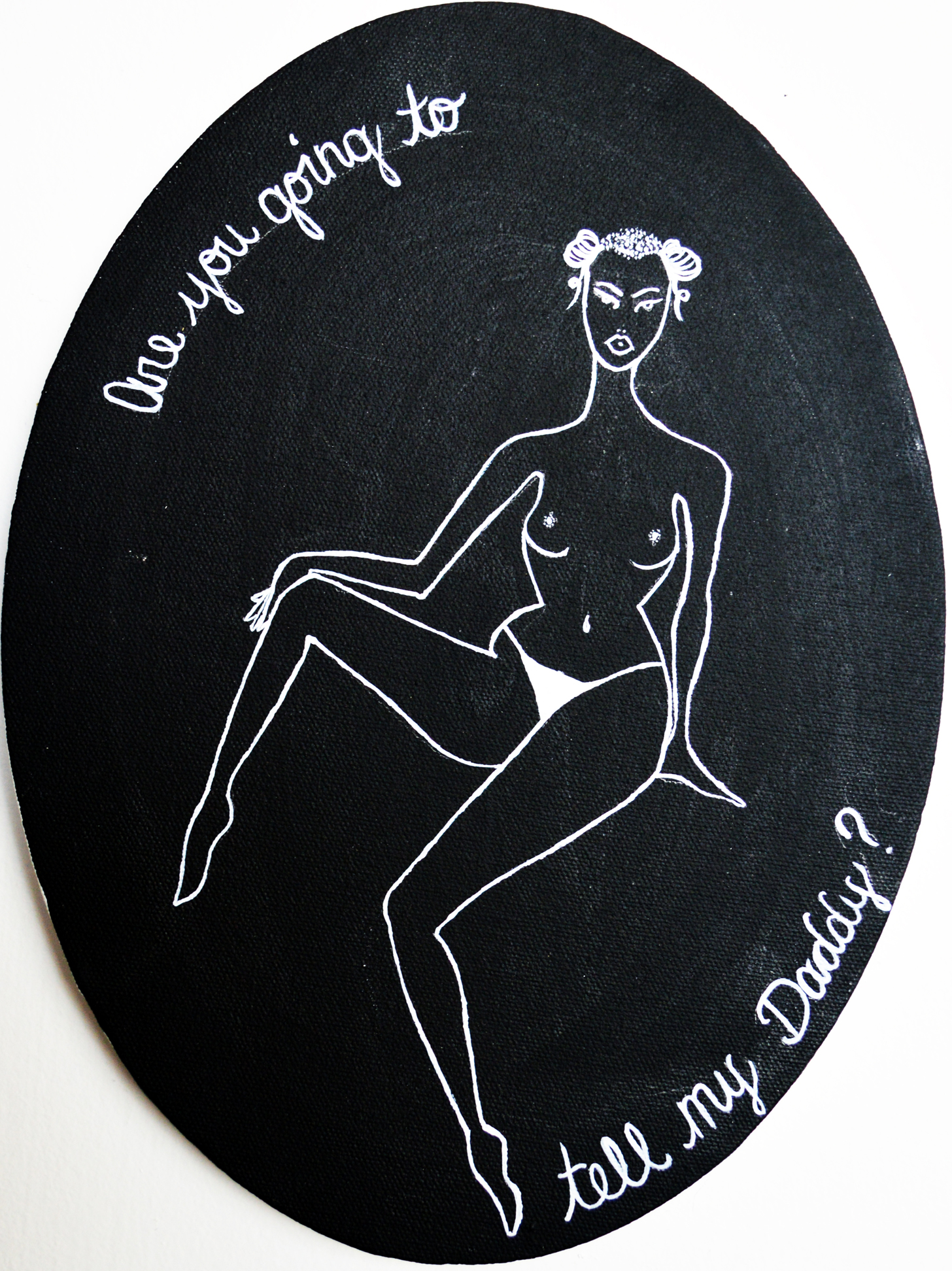 Original painting by Audrey Brown from the 'Nighting Gals' series. Acrylic and India Ink on canvas. 9" x 12"