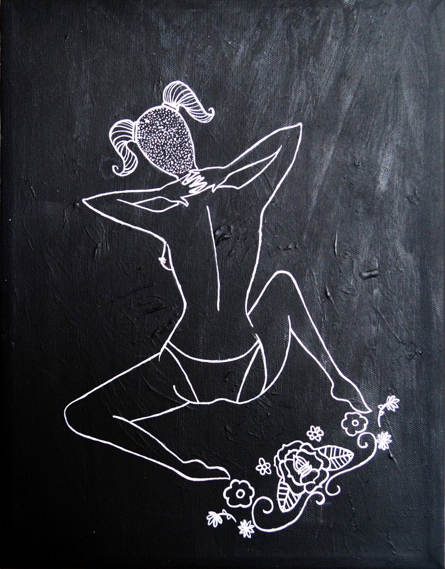 Original painting by Audrey Brown from the 'Nighting Gals' series. Acrylic and India Ink on canvas. 11" x 14"